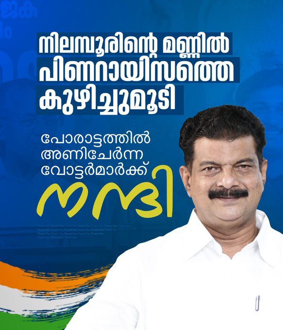 നിലമ്പൂരിന്റെ മണ്ണിൽ പിണറായിസത്തെ കുഴിച്ചുമൂടി. പോരാട്ടത്തിൽ അണിചേർന്ന വോട്ടർമാർക്ക് നന്ദി