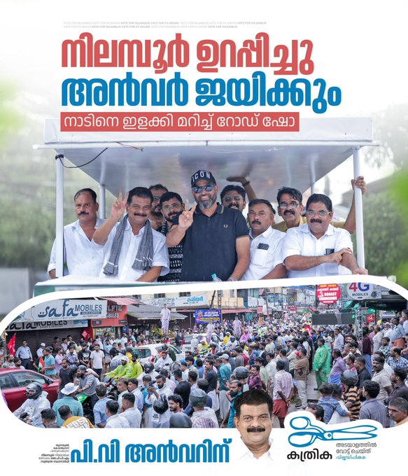 നിലമ്പൂരിൽ ചരിത്രം ആവർത്തിക്കും അൻവർ ജയിക്കും ആവേശ കൊടുമുടിയിൽ റോഡ് ഷോ