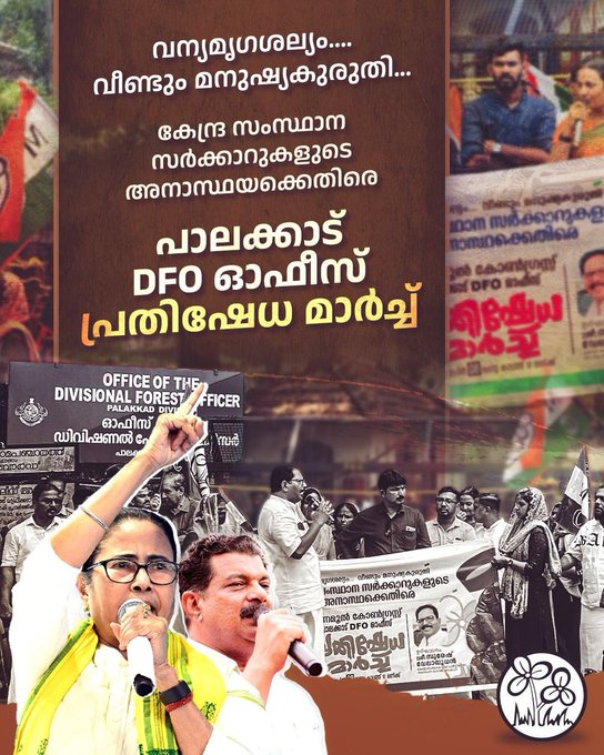 In protest against the negligence of the Central and State governments and for the safety of people’s lives, the All India Trinamool Congress Palakkad District Committee will organize a protest march in front of the DFO office on Tuesday, April 8, 2025, at 10 a.m.